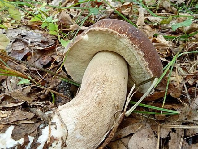 Stonek mladé houby je kyjovitý, s věkem má podobu válce nebo komolého kužele.Po celé délce je vidět jemný světle hnědý síťový vzor. Buničina je pevná, žlutavě bílá, barva se při přetržení nemění. Distribuován v jižních oblastech, kde se vyskytuje v listnatých lesích s převahou buku nebo dubu, často roste vedle kaštanů. Období růstu začíná v květnu a trvá do října.