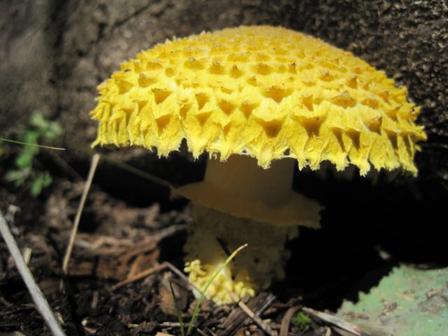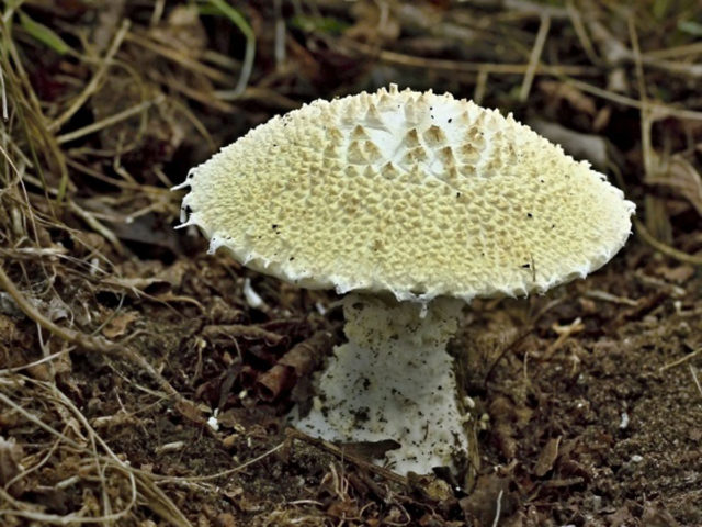 Průměrný průměr čepice je od 3 do 8 cm, některé vzorky dosahují 12 cm. V mladém věku je čepice masitá, silná, polokulovitá. Jak roste, otevírá se a stává se konvexní. Povrch čepice je suchý, bez lesku, s charakteristickými malými bradavicemi. Jedná se o zbytky velumu (společné deky), který chrání plodnice v mladém věku. Každá bradavice má tři až osm fazet, jejichž průměr se pohybuje od 0,5 do 5 mm. Když jsou suché, bradavičnaté výrůstky se snadno odlupují.