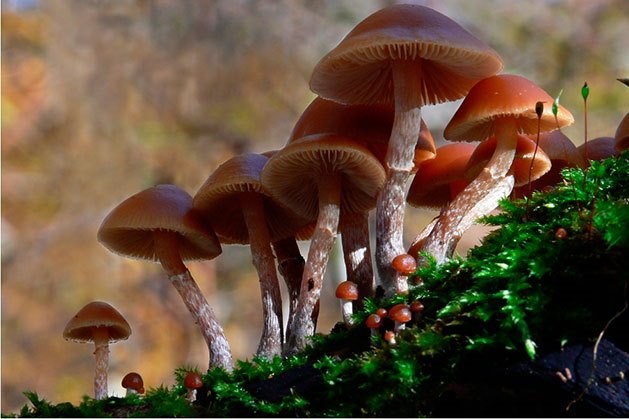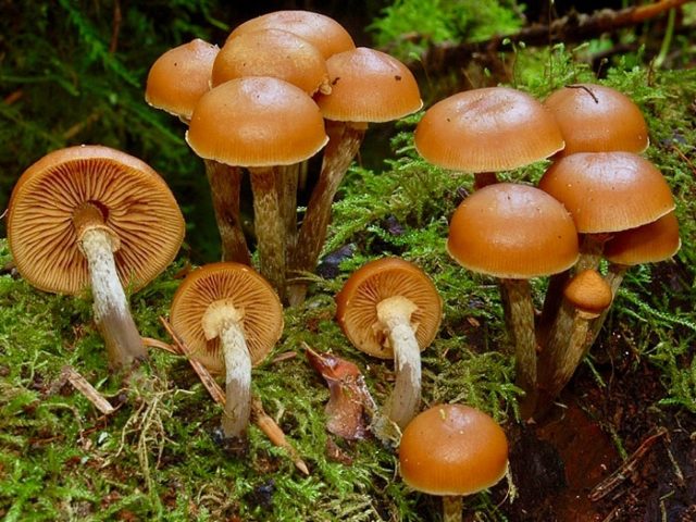 Hraniční gallerina roste na stejných místech jako letní medová agarika, miluje pařezy a shnilé dřevo