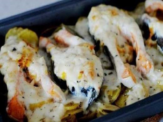 Plátky brouků se smaží na oleji s jemně nasekaným česnekem. Sklenice bílého vína se nalije do pánve a dusí se asi půl hodiny pod víkem, poté se přidá sůl a pepř podle chuti. Do hotových hub dejte ½ šálku zakysané smetany a smažené plátky pstruha. Jídlo se podává s bylinkami a mladými bramborami.