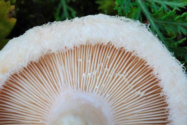 - Drť Plody Volzhanky mají bílé nebo mléčné maso. Je křehký, drobivý, má lehkou pryskyřičnou vůni a zřídka je poškozen červy. V přestávce se uvolní zakalená lehká šťáva s hořkou chutí. Když je maso naloženo, změní barvu na světle šedou.Důležité! Při nesprávném nebo krátkodobém zpracování může šťáva z volnushky způsobit zažívací potíže.