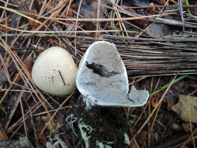 Strakatý pláštěnka - gasteromycete. Struktura jeho plodnice je uzavřená. Tvoří se pod povrchem půdy. Pak jde ven pro zrání a získává sférický nebo hlízovitý tvar. Spory jsou uloženy uvnitř plodnice, v bazidiu. Toto je orgán sexuální sporulace.
