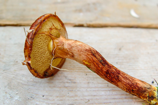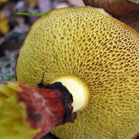 Hymenophore má nažloutlou trubkovou strukturu. Jak houba roste, barva se změní na žlutohnědou, poté zcela hnědou. Průměr pórů - ne více než 1 mm.