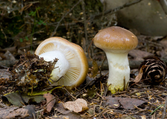 - Smrk - jedlý a užitečný zástupce rodiny Mokrukhov. Roste ve stínu jehličnatých stromů. Často se vyskytuje na severu nebo ve středním Rusku. Plodí po celé teplé období. Tento exemplář má 15 centimetrovou čepičku pokrytou sliznicí a krátkou masitou nohu s malým tmavým prstencem. Smrková kůra je považována za nejužitečnější typ, protože dužina je bohatá na sacharidy a aminokyseliny.