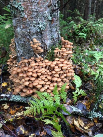 Na fotografii můžete vidět, jak rostou břízy, které tvoří celý náramek na zničených pařezech a částech stromů (mimochodem, slovo medová houba se překládá jako náramek). Houby jsou rozšířené téměř všude. Největší popularitu si ale získali mezi obyvateli východní Evropy a Ruska.