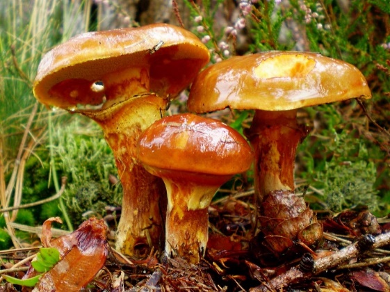 Tento druh patří k jedlým druhům, má hnědý nebo žlutý klobouk s mírně konvexním nebo plochým tvarem. Jeho pokožka je mastná na dotek, lze ji snadno odstranit. Noha nemá prsten, hustý, válcovitý tvar, mnohem lehčí než čepice. Jeho výška je asi 8 cm.