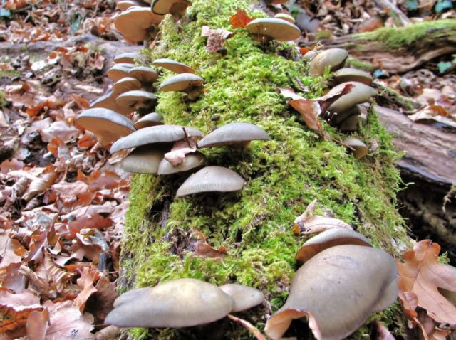 Podzimní hlíva ústřičná často roste společně s nohama a tvoří jeden organismus s několika okvětními houbami