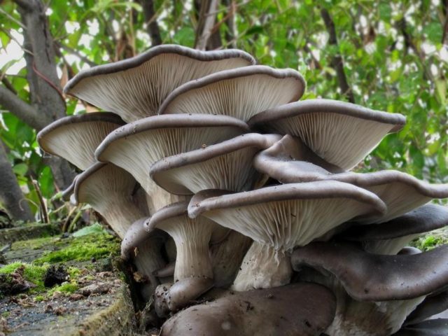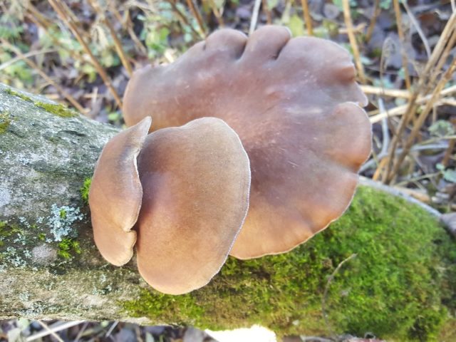 Hlíva ústřičná. Jedlý. Má šedohnědou barvu, často s fialovým odstínem, buničiny bez zápachu.