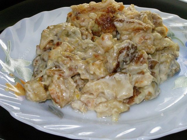 Smažená podzimní hlíva ústřičná se zakysanou smetanou