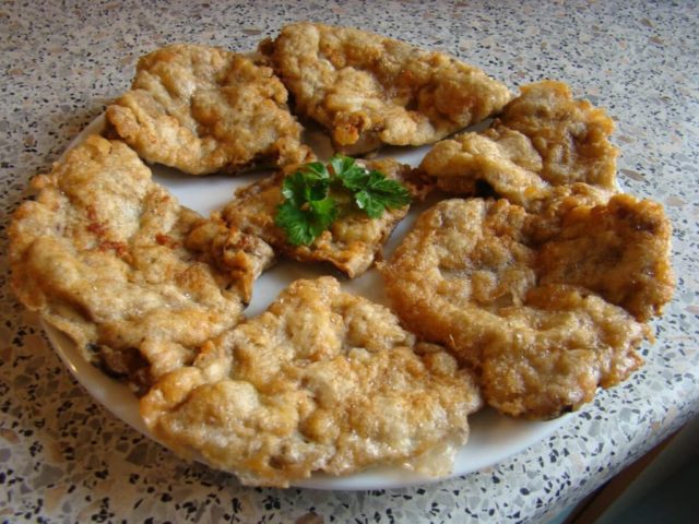 - Zahřejte pánev. Každý klobouk ponořte do těsta a smažte ho z obou stran do zlatova. Olej nebo tuk by měl pokrývat dno pánve minimálně 5-8 mm, aby se jídlo správně vařilo.