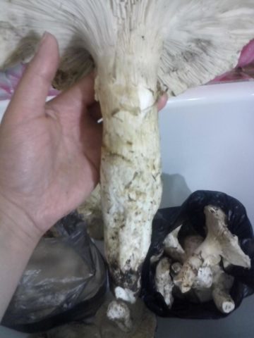 Velikosti nohou mohou být až 17 cm dlouhé a 5 cm v průměru. Na základně je tradičně zúžený, ale uprostřed má výraznou bouli. Většina stonku je umístěna v podzemí, takže při sklizni musí být ovocné tělo trochu vykopáno. Prsten zůstává po poměrně dlouhou dobu. Někdy nezmizí po celou dobu trvání plodového těla.