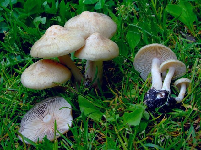 Spodní vrstvu tvoří časté široké desky. U mladých jedinců jsou bílé, s věkem se stávají špinavě žlutými nebo růžovými, se stářím - hnědým s načervenalými skvrnami. Tento obyvatel lesa se množí podlouhlými spórami, které jsou umístěny ve žlutohnědém prášku.