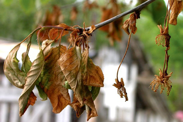 - plody se přestanou vyvíjet, jejich pokožka ztmavne;
