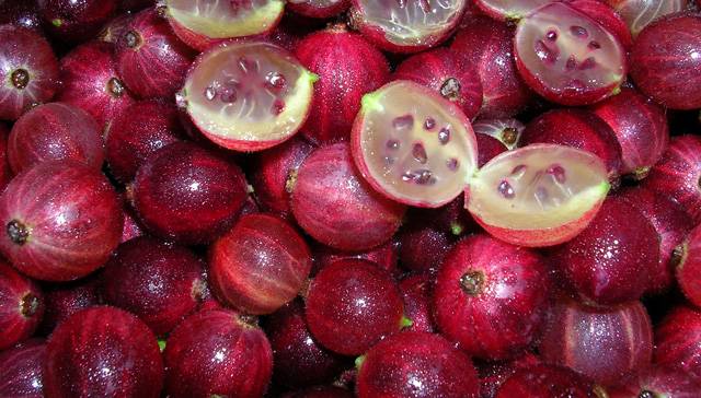 Jak vidíte na fotografii, zralé plody angreštu Candy mají poměrně velkou velikost a dosahují hmotnosti od 3 do 6 g. Kůže bobule je tenká, růžově zbarvená, má mírnou drsnost. Počet semen v plodu je mírný.
