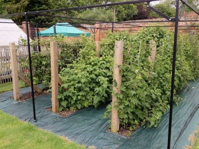 - Metodou mřížoviny jsou maliny svázány brzy na jaře, kdy výhonky teprve začínají růst. Drát je tažen ve třech úrovních (ve výšce 60, 120 a 160 cm).