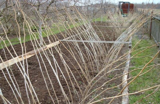 - Vějířovité upevnění malin zahrnuje použití dvojice podpěr a drátu nataženého mezi nimi. Poté polovina křoví jde na jednu stranu a druhá část maliny na opačnou podporu.