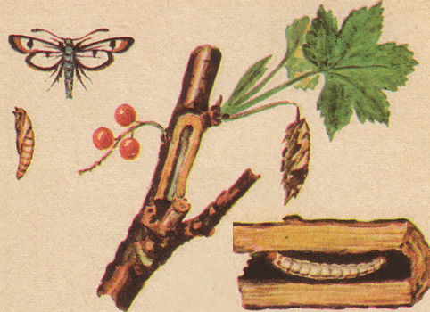 - Během května a června se půda pod a kolem keře aktivně uvolňuje. Během tohoto období se kukly objevují z larev skla, které opouštějí vnitřní tkáně rostliny.