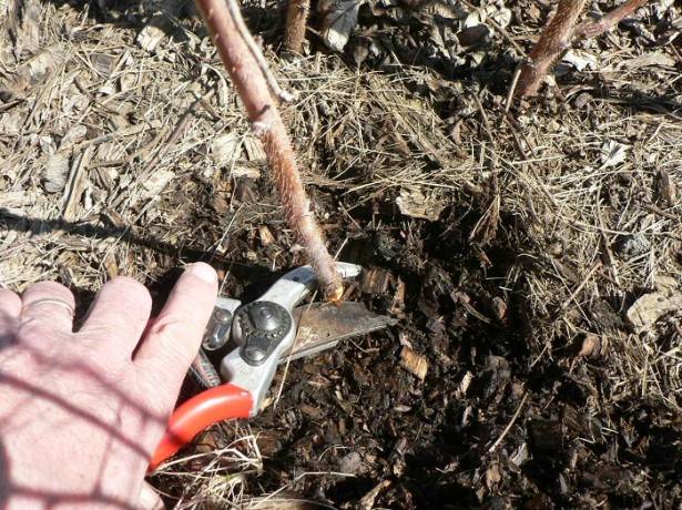 Po prořezání jsou větve odstraněny z místa a spáleny. Nemůžete je opustit, tím spíše, že mohou být použity jako zimní úkryt. Na starých větvích obrovské množství škůdců a houbových spor. Další péče po sklizni prořezaných větví je zaměřena na zasypání země pod keři silnou vrstvou rašeliny. Mulčování udrží vlhkost a v zimě zahřeje kořeny.
