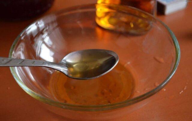 - smíchejte tři velké lžíce olivového oleje a stejné množství medu;