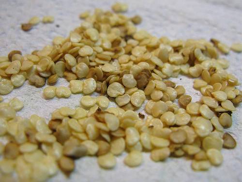 - semena se vyklíčí předem umístěním mezi dvě vrstvy vlhké gázy nebo bavlněné podložky.