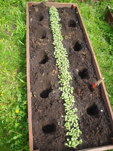 Film se pravidelně odstraňuje a obsah se mísí. Výslednou kaši je třeba zalévat kolem rostlin. První krmení lze provést tři dny po výsadbě sazenic. Během této doby je již jasné, které rostliny začaly a které je třeba vyměnit.