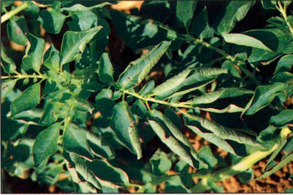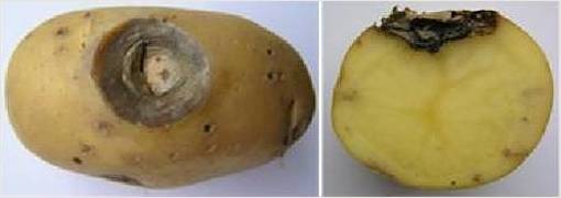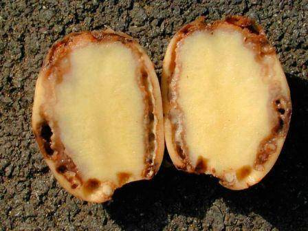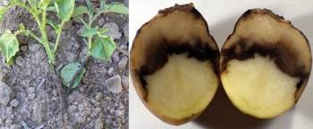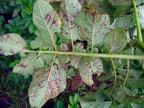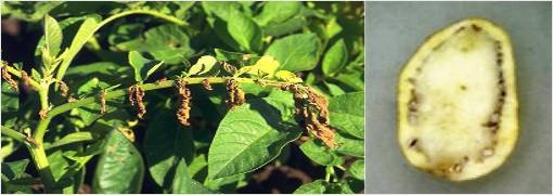 - s rozvojem nemoci listy a stonky brambor zhnědnou a slábnoutvymírat;