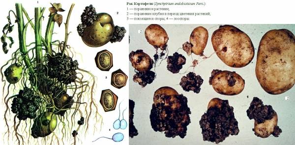 Spory rakovinné houby se skrývají v půdě a jsou vysoce životaschopné. Pokud mají brambory v jedné sezóně známky rakoviny, pak od nynějška lze na tomto místě zasít pouze odrůdy odolné vůči této chorobě, například „Belorusskiy“, „Stolovy 19“, „Falenskiy“, „Lvovskiy white“ a některé další. Při pěstování takových odolných odrůd za 3-5 let bude možné zcela vyčistit půdu od houby této nemoci.