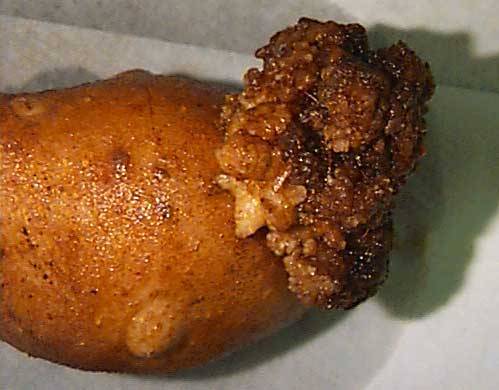 - Práškový strup má mnoho charakteristických rysů, které se objevují na hlízách, stoncích, bramborových vrších. Takže na stoncích a kořenech nemocných rostlin můžete vidět charakteristické výrůstky. Jejich barva se během vývoje onemocnění mění z bílé na tmavou. Po změně barvy se výrůstky rozpadají. Bramborové hlízy jsou pokryty ulcerativními formacemi červené barvy, jejichž průměr nepřesahuje 7 mm. Zdrojem choroby je houba, může být na povrchu sadbových brambor nebo v půdě. Proto se doporučuje ošetřit výsadbový materiál fungicidem před jeho zapuštěním do země. Vředy na bramborách způsobené tímto plísňovým onemocněním nepředstavují ve stádiu skladování plodiny žádnou zvláštní hrozbu, ale skrze ně se mohou do rostlinné dutiny dostat různé hnilobné infekce, houby a bakterie. Tyto brambory je nutné skladovat za přísného dodržování určitých vlhkostních a teplotních podmínek.
