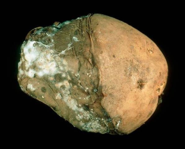 - na hlízách se objevují skvrny pokryté načechraným bílým nebo šedým květem. V průběhu času se zelenina zhnitá.