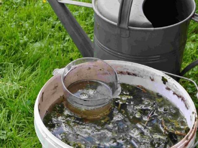 - Krmení. Při pěstování na hromadách kompostu nebo na dobře hnojené půdě předem není nutné krmit cukety odrůdy "Tsukesha". Pokud je půda vzácná nebo nebyla aplikována hnojiva, jsou keře napájeny organickými látkami. Plody tsukeshi rostou rychle, takže je lepší nepoužívat chemikálie. Jinak je budete muset vzít na jídlo. Podle zahradníků je infuze bylin připravených jako na fotografii nejvhodnější pro dřeně "Tsukesh".