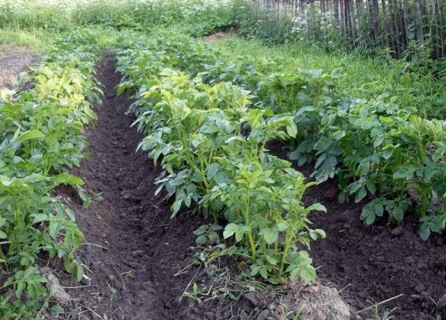 Přibližně 7–10 dní po výsadbě by měly být hliněné hřebeny zavaleny hráběmi. Brány se zbaví vláknitých plevelů rostoucích v půdě a zlepší provzdušňování, což umožní bramborám přístup ke vzduchu.