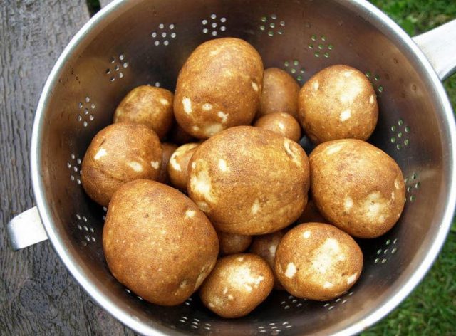 2 týdny před sklizní se doporučuje pokosit vrcholky a ponechat maximálně 10 cm nad zemí od keře. To pomůže zbavit se škůdců, kteří žijí v bramborových listech. Kultura se sklízí za jasného dne. Použijte vidlici, lopatu nebo malotraktor. Vykopané hlízy zůstávají na poli až do konce dne. Když kořeny trochu vyschnou, shromažďují se v krabicích.