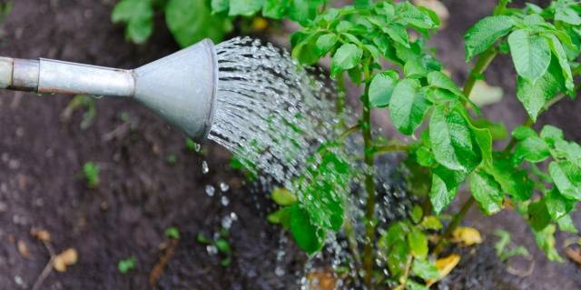 - během období vázání hlíz jsou brambory nutné zalévat pravidelně a hojně... Fáze aktivní tvorby brambor začíná současně s obdobím květu keřů. V tuto dobu se výsadba brambor zavlažuje alespoň jednou týdně. Nejlepší je použít zavlažování postřikem, aby nedošlo k vymytí kořenů a hlíz.