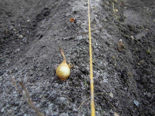 Připravený rostlinný materiál je zasazen do teplého bezvětří. Sevok je spuštěn do země 3 cm hluboko, nejlépe bez lisování. Raději dejte cibuli na hřeben a posypte ji zeminou. Kořenový systém kultury se tedy bude vyvíjet rychleji. Vzdálenost mezi cibulkami, kterou poskytuje čínská technologie výsadby, by měla být 12-15 cm, v červnu jsou hřebeny otevřené - vykopávají sazenice do 2/3 výšky a odstraňují přebytečnou půdu v uličkách.