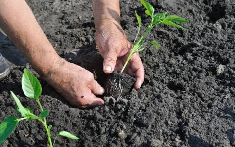 Výsadba sazenic pepře nebude obtížná ani pro nezkušené zahradníky. Chcete-li sazenice snadno dostat z šálků, musíte rostliny dobře zalévat a nechat půdu úplně vsáknout. Poté opatrně vyjměte klíčky z nádoby a vložte je do otvorů. Neměly by být příliš hluboké, protože kořen pepře je povrchní a nejde hluboko do země.
