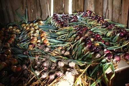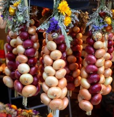 Cibuli udržujte spletenou do copánků - v tomto případě nejsou suché listy odříznuty. Nebo můžete lístky odstřihnout 4 cm od krku, vložit do kartonových krabic nebo nylonových punčoch a pověsit. V této formě lze cibuli skladovat až 18 měsíců.