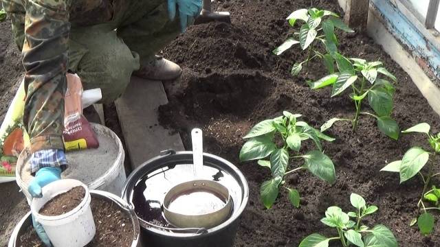 Půdu hnojíme několik dní před výsadbou, nebo alespoň jeden den. Pamatujte, že sazenice pepře nemají rádi kyselou půdu. Pokud máte právě takovou půdu, můžete upravit kyselost dolomitovou moukou. Obvykle se aplikuje přímo v době výsadby sazenic pepře. Poté, co byly otvory s pepřem pokryty zeminou, je posypáno dolomitovou moukou a opatrně rozetřeno hrablemi. Pokud se bojíte dotknout se rostlin, mouku velmi rovnoměrně prosévejte, pak se obejdete bez použití nástrojů.
