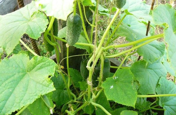 Keře odrůd okurky Chlapec s prstem roste ve sklenících, se spoustou zeleně. Bez podvazku na mokré zemi rostlina rychle zhnije a zemře.Pro rovnoměrné rozložení slunečního světla musí být vyrostlé keře připevněny k podpěrám.