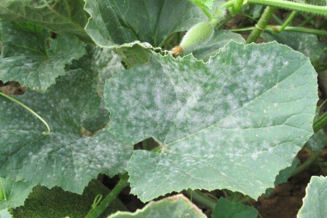 Onemocnění lze detekovat podle bílého květu na zadní straně listu, později zvenčí rostou bělavé skvrny. Poté listové desky ztmavnou, zvlní se a vyschnou. Jako ošetření se používá postřik roztokem sody (0,4%) a Fitosporinem.
