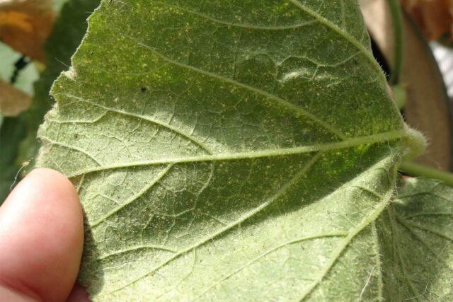Klíšťata je obtížné spatřit, protože jsou menší než 1 mm. Škůdci jsou rozdáváni pavučinou, která obklopuje listy. Pokud není léčba akaricidy (Keltan, fosfamid) nebo biologickými produkty (bitoxibacilin) provedena včas, harmonické okurky zemřou.