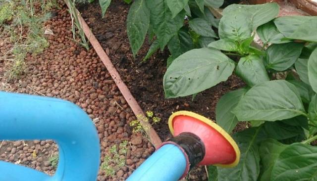 Všechny přísady jsou důkladně promíchány. Toto řešení se používá k zalévání papriky jako stimulanty hnojení.