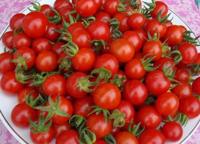 Cherry rajčata - pokud jde o velikost, jsou umístěny uprostřed mezi dvěma výše uvedenými druhy, plody od 10 do 30 g. Ale nejdůležitější věcí, která je odlišuje od všech ostatních rajčat, včetně velkoplodých, je dvojitá koncentrace suchých živin a cukry v buněčné míze. A chovatelům se také podařilo přinést cherry rajčata s příchutí jahod, malin, borůvek a melounů. Proto je mnohem více vnímá jako ovoce než zeleninu. K tomu hodně přispívá i nejrůznější barva cherry rajčat.
