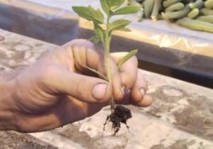 Nejlepší je nedotýkat se rostliny vůbec, pečlivě vybírat kus země s kořeny, ale pokud to nefunguje, je přípustné držet sazenice za listy.