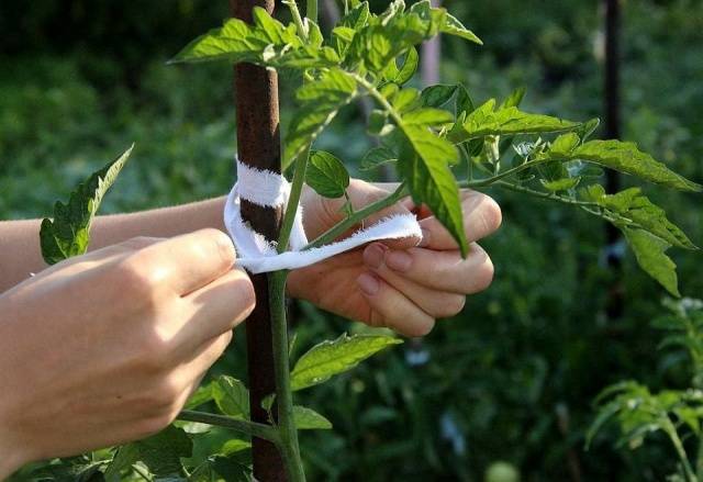 Formace pro poddimenzovaný standardní rajčata nejsou nutná, ale bude užitečné posílit keř podvazkem, aby se hrnec nepřevrátil pod tíhou ovoce.