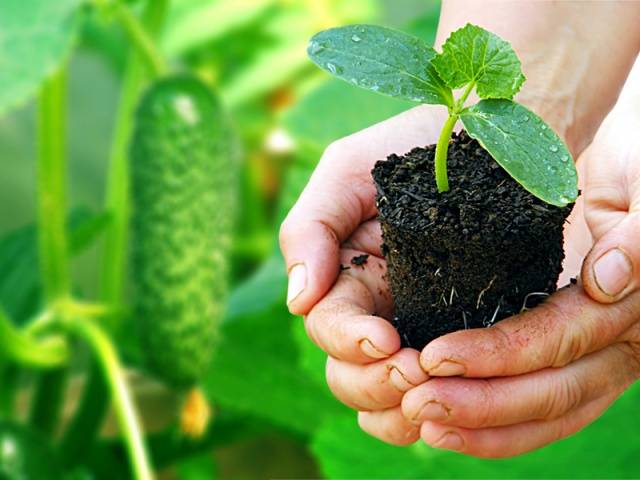 Domácí sazenice okurky jsou umístěny společně s hliněnou hrudkou z šálků nebo jiných nádob. Při používání rašelinových nádob k setí budoucích keřů je třeba mladé sazenice prohloubit tak, aby okraje nádob mírně stoupaly nad úroveň terénu.