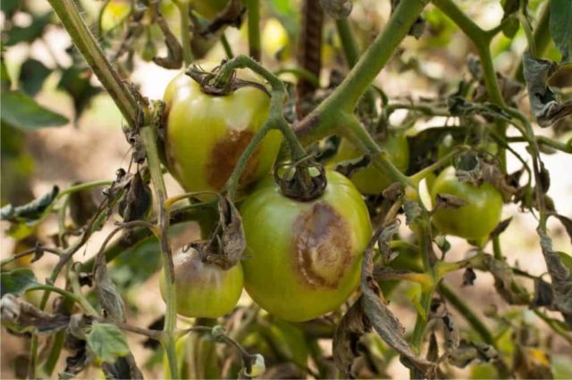 - Pozdní plíseň... To je považováno za nejčastější onemocnění rajčat "Shaggy čmelák", které může vést ke smrti výsadby. Jeho znaky jsou nahnědlé vodnaté skvrny, které pronikají do dužiny ovoce a jsou pokryty bělavým květem. Toto onemocnění postihuje také listové desky. Rovněž vyvíjejí světelné značení. Pozdní plíseň se obvykle vyskytuje na konci léta a počátkem podzimu. Při prvních příznacích jsou postižené listy odtrženy a spáleny. Jsou ošetřeny fungicidy.