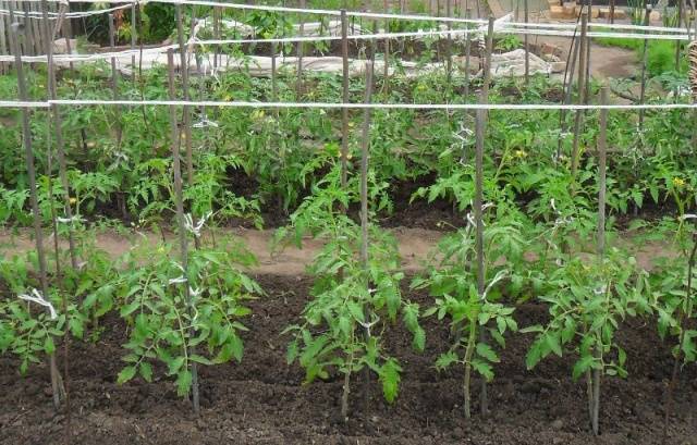 Mezi rostlinami nechte 20 cm a mezi řádky až 50 cm. Po výsadbě jsou rajčata hojně napojena. Během příštího týdne nepřidávají vlhkost a krmení, stačí pravidelně uvolňovat půdu a tlačit rajčata.
