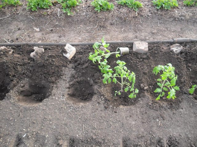 Hloubka otvoru by měla být nejméně 5 cm, vzdálenost mezi keři by měla být od 50 cm Před výsadbou rajčat Bella Rossa je nejprve nutné hojně zalévat, aby nedošlo k poškození kořenového systému.