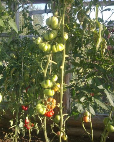 - Centrální kmen rajčete je střední tloušťky, hustý, tvrdý, šedozelené barvy, poskytuje velké množství světle zelených nevlastních dětí. Struktura rajčatových vláken je tuhá, pružná. Neurčitý typ vegetace ovlivňuje stabilitu středního stonku, nevydrží množství plodů, je nutná fixace na mřížoví.