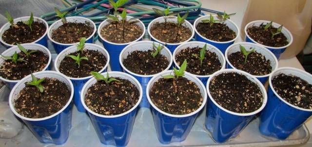 Pro počáteční výsev semen jsou vhodné i malé šálky o objemu 100 - 150 ml. Ale po rozložení 3-4 listů na sazenicích je nutné každou rostlinu přenést do větších kelímků na sazenice o objemu asi 500 ml. Pokud je na parapetu další místo, můžete okamžitě vzít kontejnery o objemu jednoho litru nebo více k překládce.